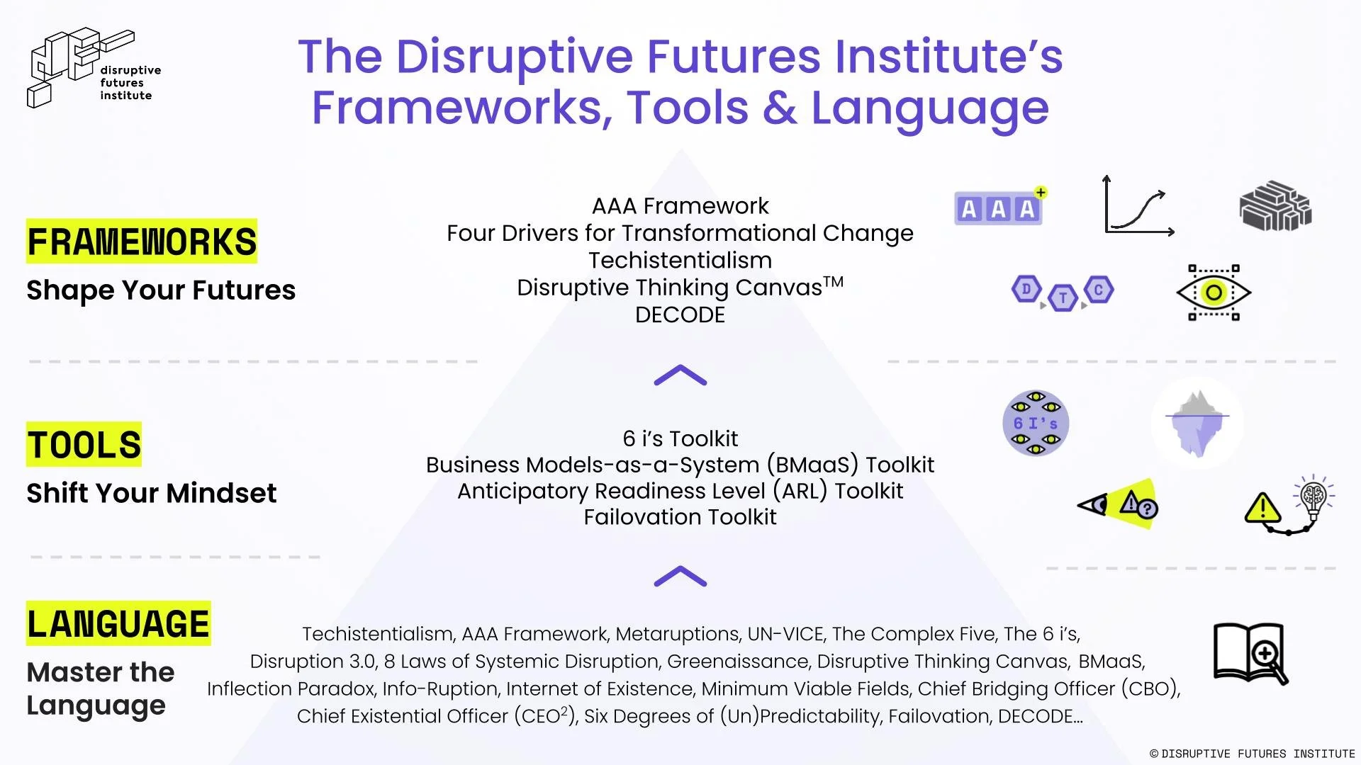 One of the most recognized aspects of the Disruptive Futures Institute is its unique suite of frameworks, toolkits, and concepts.